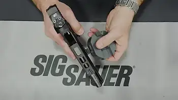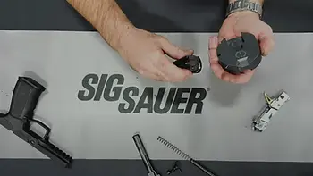 The Puck features a backplate cutout that is profiled to match the rear of the P320 slide. This cutout incorporates a small metal pin that presses down the extractor spring pin, simplifying the removal of the backplate and providing access to the extractor pin, spring, and striker mechanism.