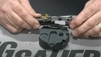 The Puck’s slide cutout allows you to rest the slide vertically, making it easier to work on the rear of the slide, such as reinstalling the backplate.